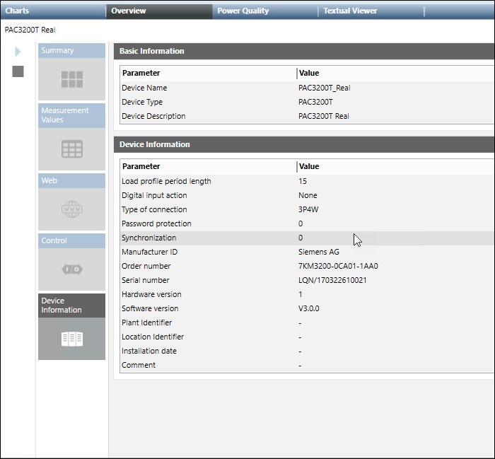 - Reset Energy Counters: Resets the values for the measurement points to 0.