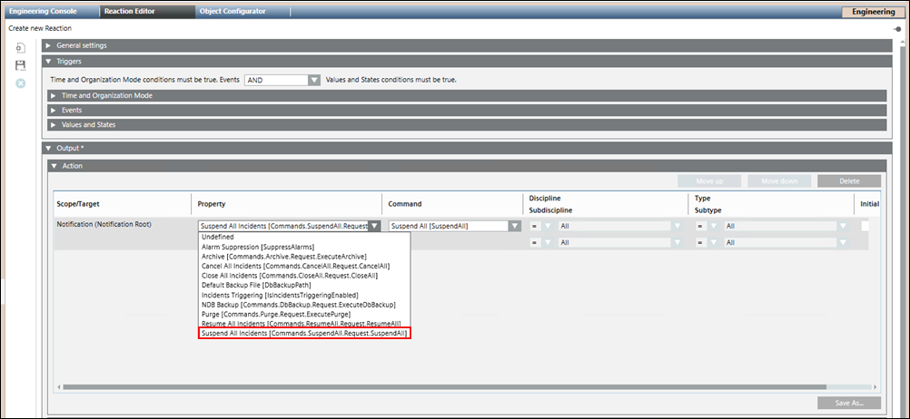 - To suspend all the active incidents, select Suspend All Incidents. The command structure [Commands.SuspendAll.Request.SuspendAll] varies for other commands respectively.