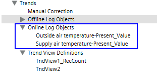 The file displayed in the log is saved as DIMigrationTrendViewLog.csv in folder [Installation Drive]:\[Installation Folder]\[Project Name]\Log and can be opened in Excel. The separators for the CSV file are based on the set Desigo CC language.