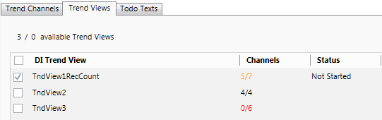 0/6 : No channel was able to be assigned. Check whether you selected the corresponding sites. - Select one or more Trend Views and select the check box to the left, next to DI Trend View.