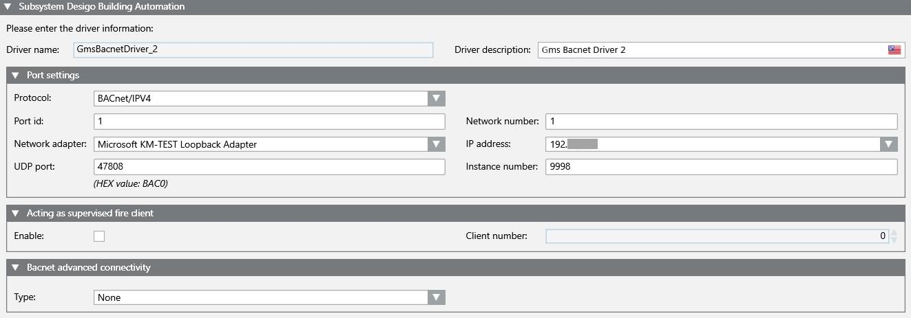 - In the Subsystem Desigo Building Automation expander, enter a name in the Driver description field.