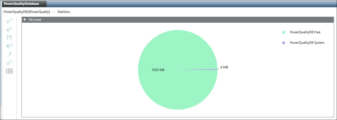 The Fill Level expander displays the pie chart which shows free and consumed memory in PowerQuality database.