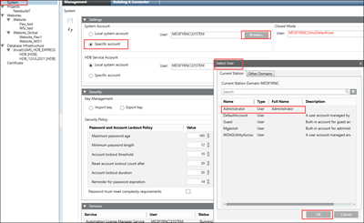 • (Optional) You might need to enter password for the admin account that was selected in System node.