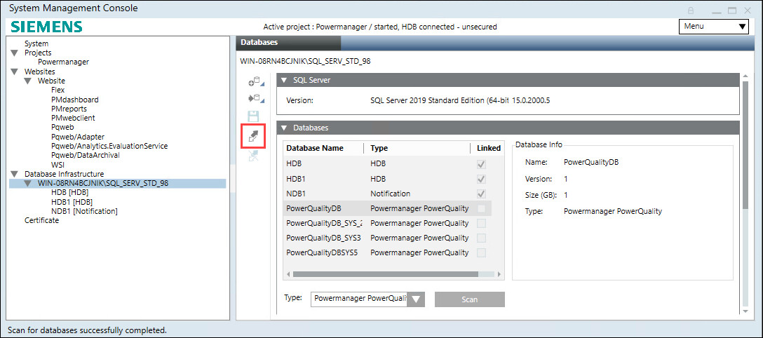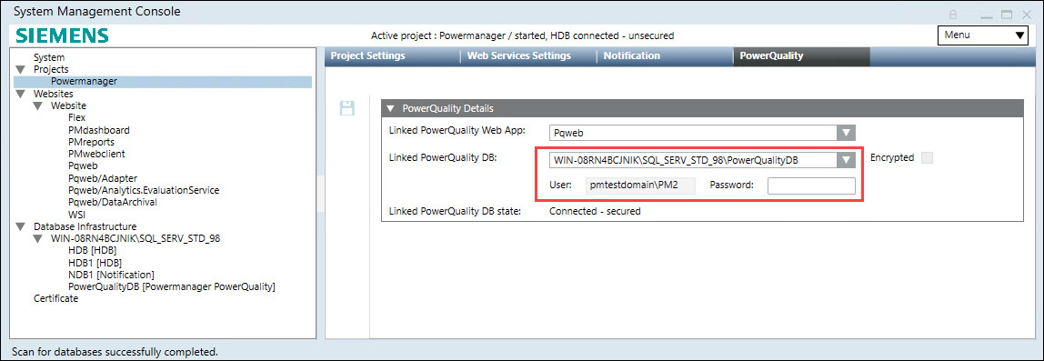 - Navigate to Databases expander > Type, select Powermanager PowerQuality.